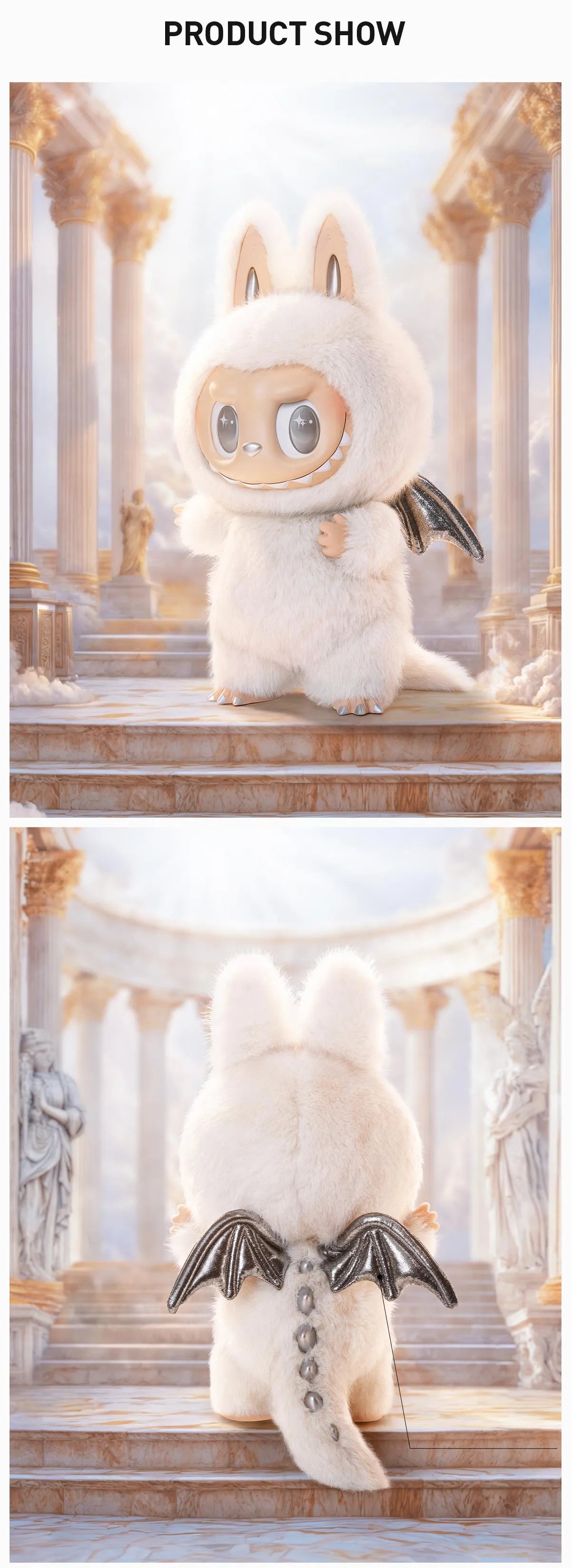 Designer: POP MART Release Date: October 25 SIZE: 33*25*58CM/12.99*9.84*22.83INCHES MATERIAL: SHELL - 36% POLYESTER/35% PVC/29% ABS STUFFING - 70% POLYESTER/27% POM/2% RUBBER/1% SPONGE Not suitable for persons under 15.